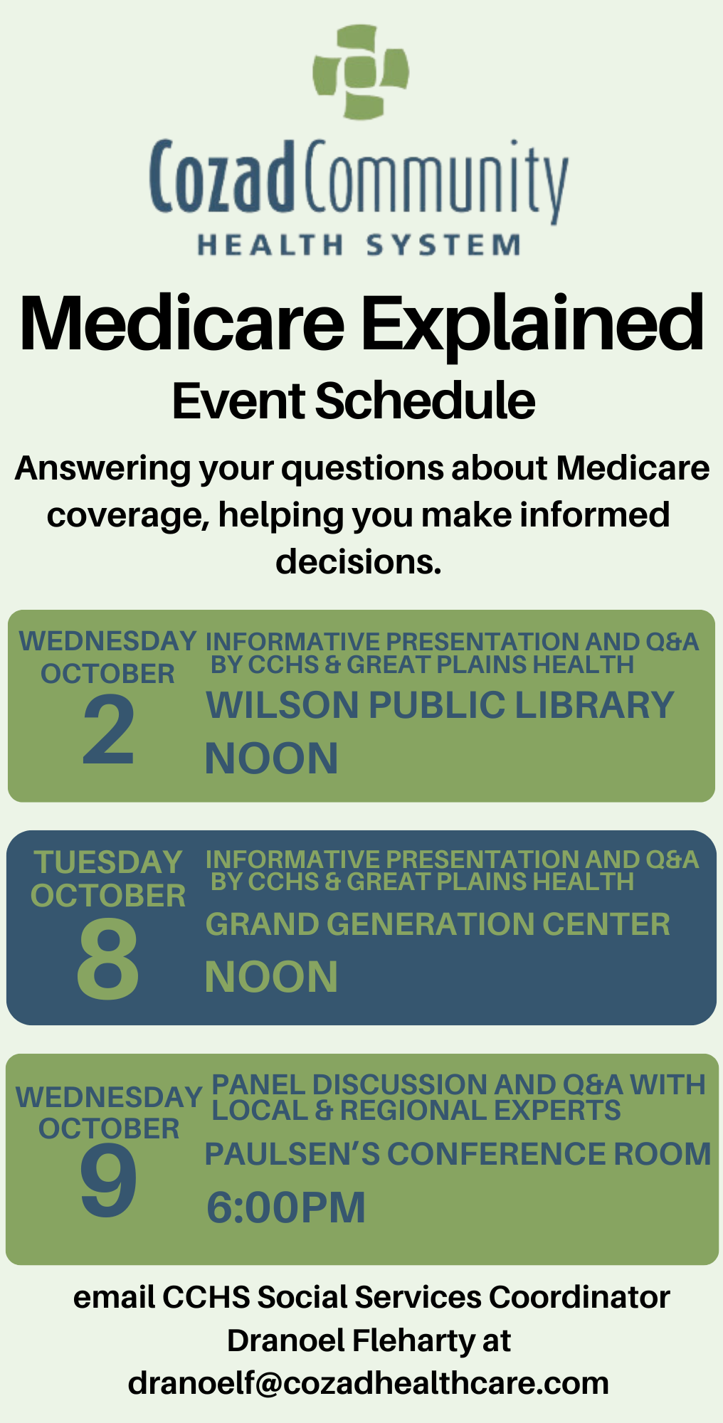 Welcome to the CCHS Medical Minute — a hub for all the latest news and updates from Cozad Community Health System. Here, you’ll find press releases, important announcements from our healthcare providers, upcoming events, medical updates, and insights into what’s happening across our health system. Stay connected with us for timely information, health tips, and community news to keep you and your family informed and engaged.